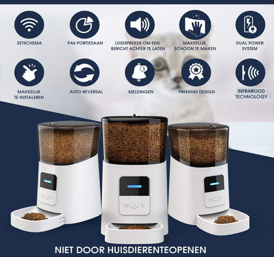 Automatische voerbak voor kat & hond | Smartphone besturing | Voerinhoud 6 Liter | Spraakrecorder | 50 Porties Per Dag