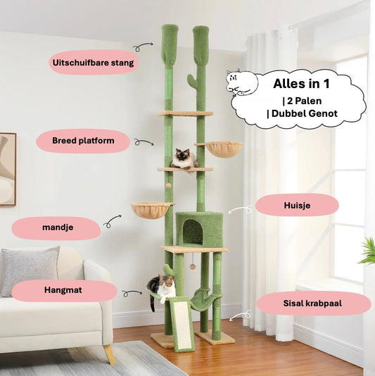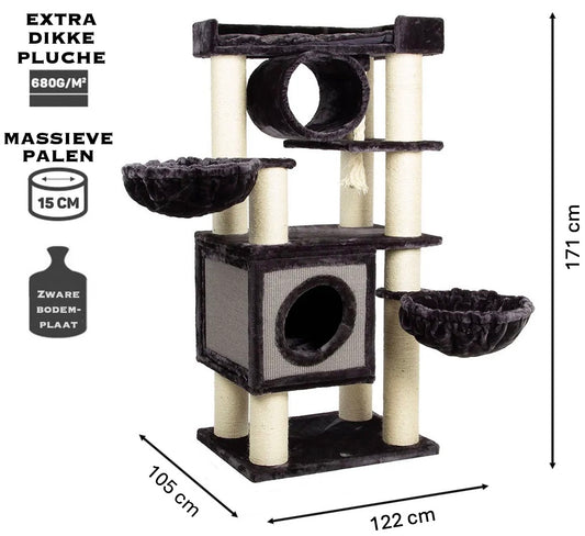 Tijdelijke aanbiedingDouble Fun Speeltoren | Katten | 2 krabpalen | 2 mandjes | Extra stevig | 6 verdiepingen