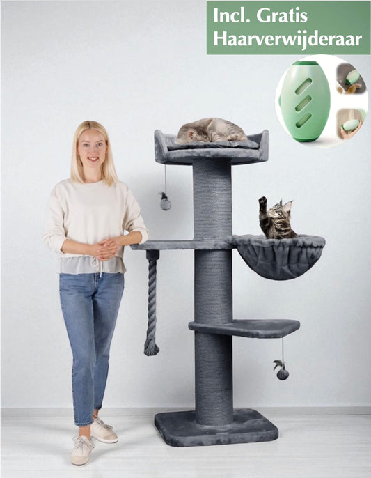 Speeltoren Mimi | Sisal Krabpaal | Instelbare Hoogte | 5 Platforms | Hangmat | Extra Stevig