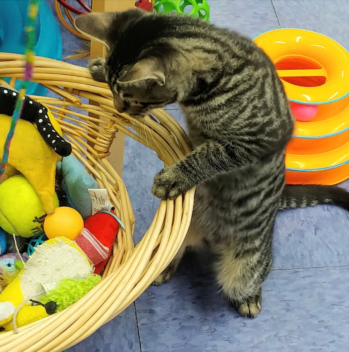 We geven speeltjes, krabpalen, dekens, trappen en andere fijne producten die hun leven aangenamer maken terwijl ze wachten op hun nieuwe baasje.